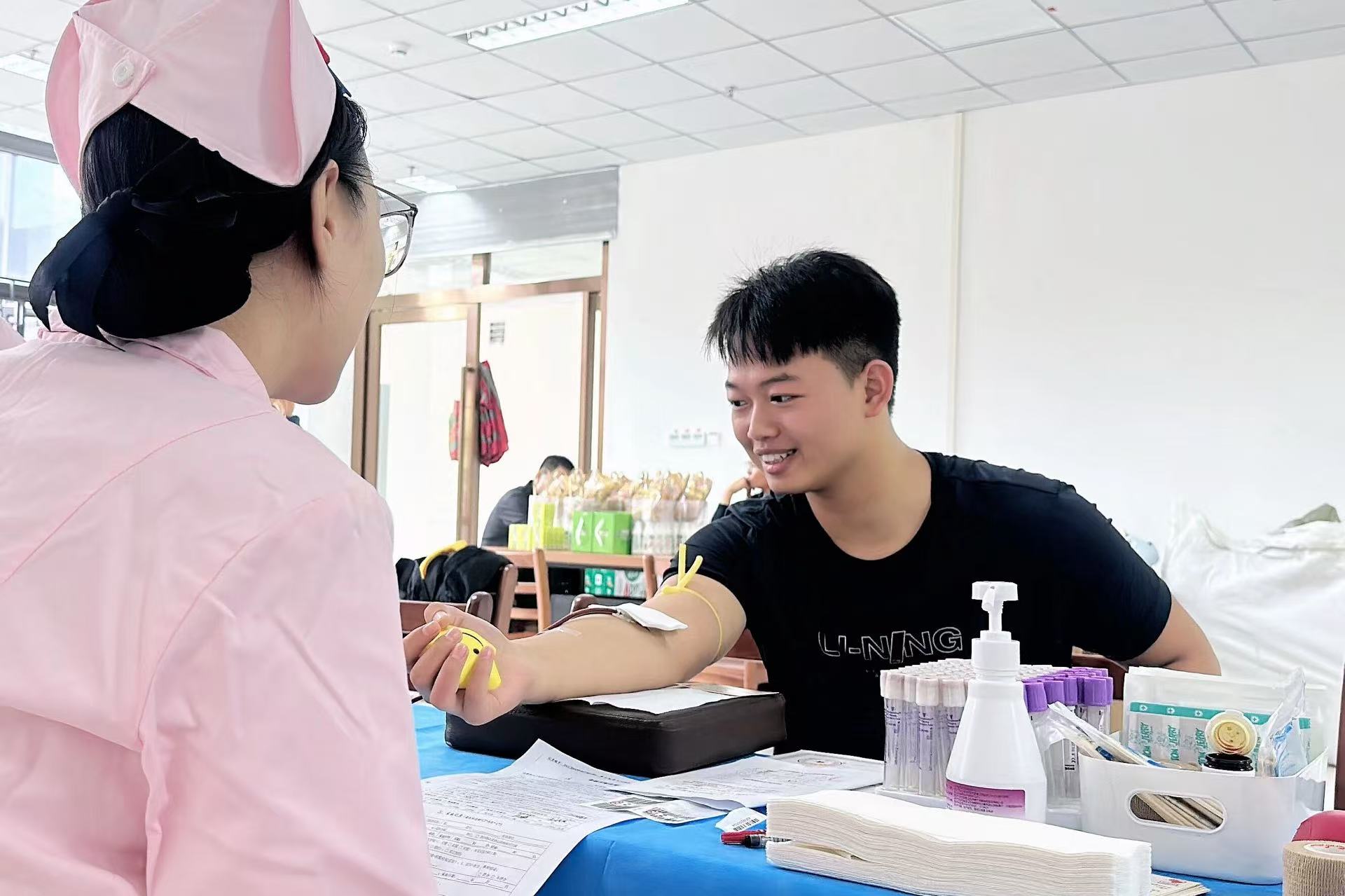 对于参与献血的学生而言,这次经历也意义非凡。电商2402班的李学栋在扎手指测血型时,才知道自己是O型血,“听说我的血能救急,还能帮到白血病患者,连骨髓移植都用得上。看着采血袋慢慢满起来,突然觉得挺值的,原来随手做的小事,真能给别人的生命帮上忙”。