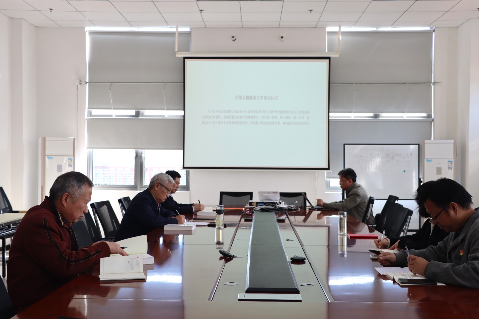 此次会议专题学习研讨《习近平谈治国理政》第五卷。本次学习旨在引导师生员工深刻把握习近平新时代中国特色社会主义思想的精神实质、核心要义与实践要求,切实把学习成果转化为推动学院高质量发展的强大动力和实际成效。
