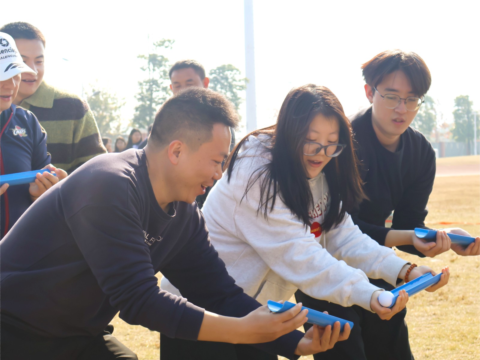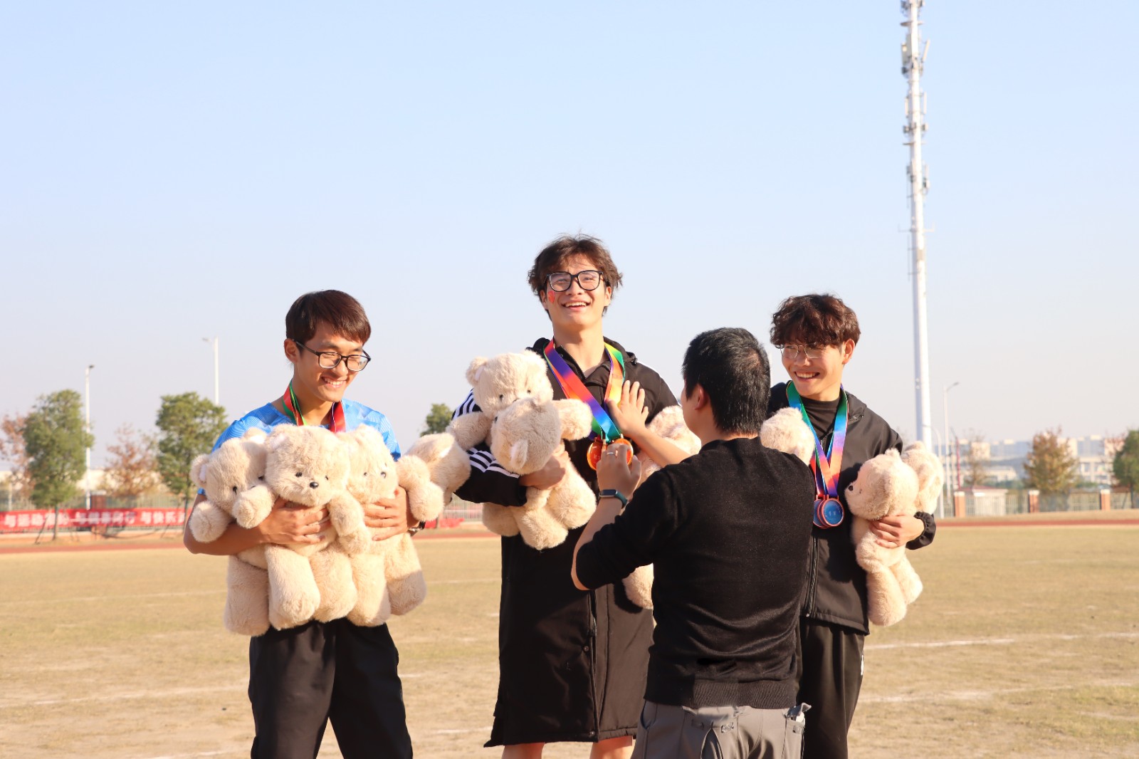 看台上,啦啦队的欢呼与笑容肆意绽放;冲线后,健儿们疲惫却自豪的笑意再也藏不住。更精彩的是教职工赛场!平日里严谨的老师,在趣味项目中“表情管理”彻底失败,奔跑、接力、呐喊……那份纯粹的快乐,比奖牌更闪耀。