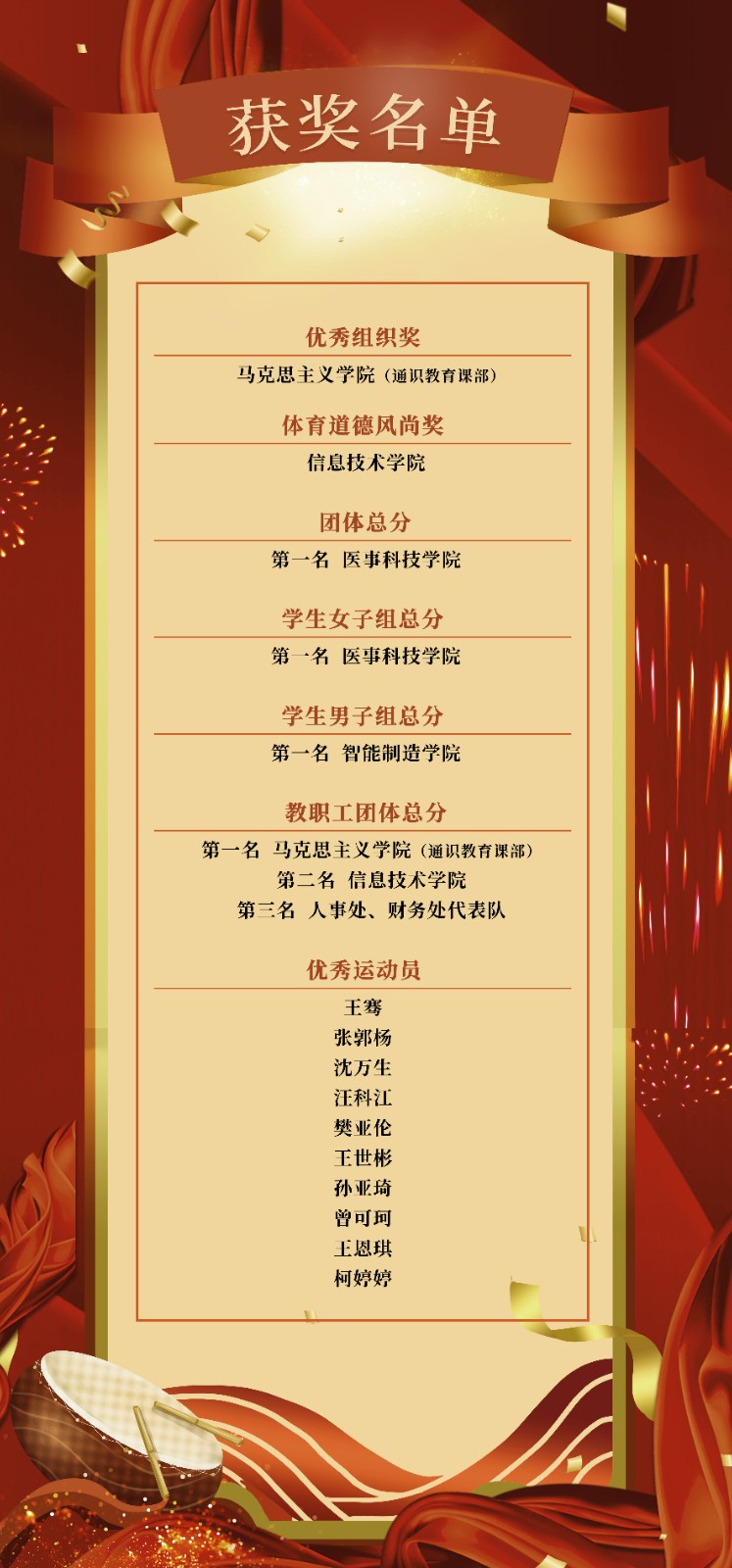愿大家将赛场上那份拼搏的勇气、坚持的毅力和团队的信念,