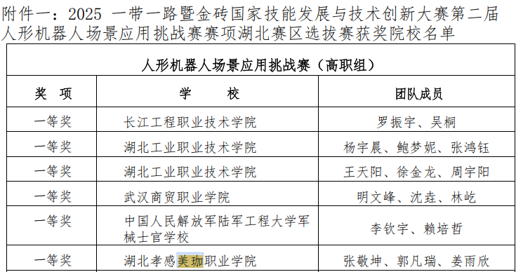 在近日落幕的2025“一带一路”暨金砖国家技能发展与技术创新大赛第二届人形机器人场景应用挑战赛湖北赛区选拔赛中,智能制造学院代表队表现卓越,凭借扎实的技术功底、创新的应用思维和稳定的临场发挥,从众多参赛队伍中脱颖而出,共荣获省级一等奖1项、省级二等奖7项、省级三等奖1项的优异成绩。尤为可喜的是,荣获省级一等奖的团队已成功斩获进军全国总决赛的资格,将代表湖北省与全国顶尖院校同台竞技!