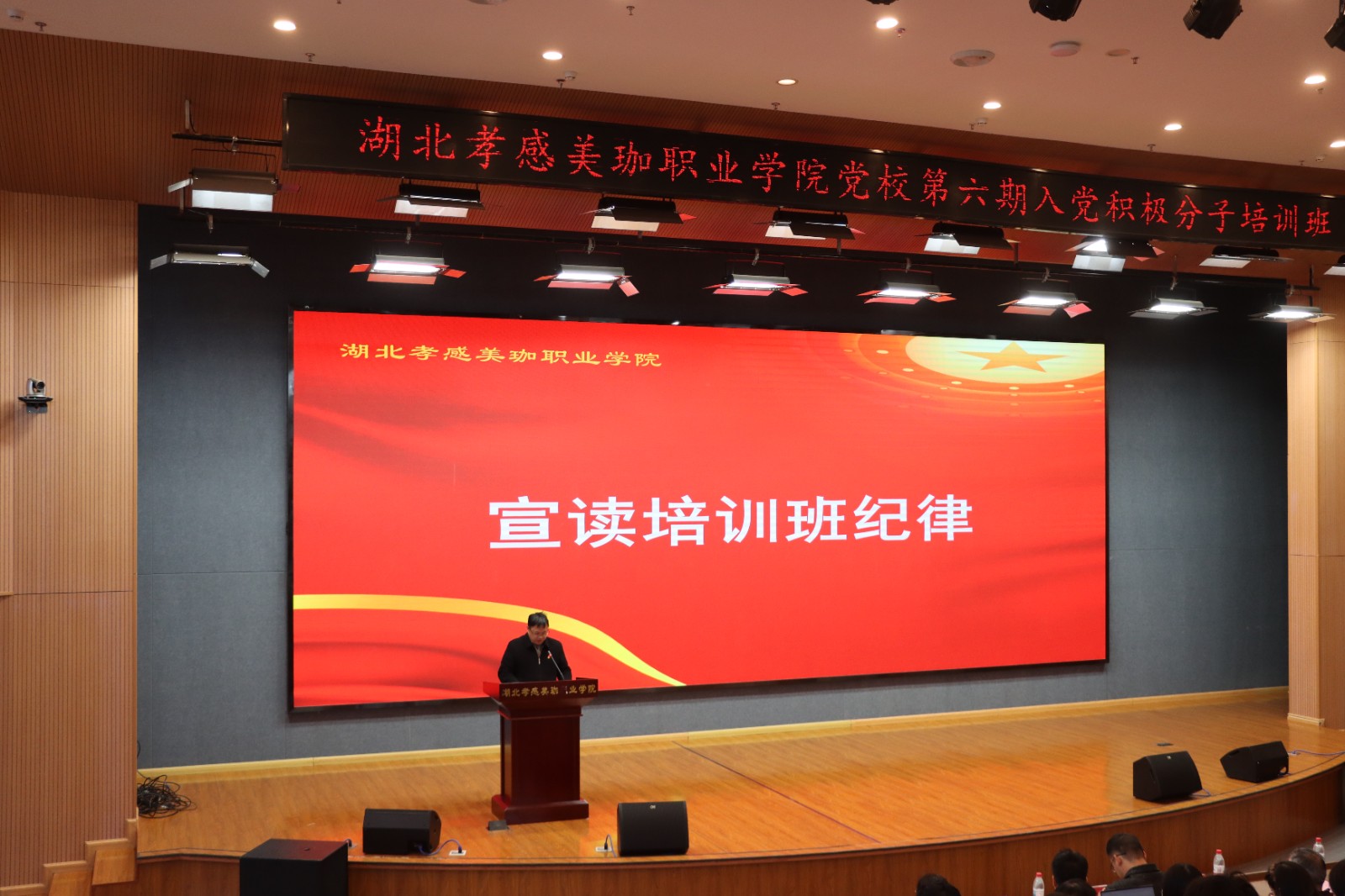 党总支统战委员兼青年委员、财务处处长胡世杰现场宣读了培训班管理规定。他强调,入党积极分子培训班是夯实党员发展工作基础、提升青年师生思想政治素养的重要平台,也是学校党建工作的关键环节。本次培训将实行“三个一”综合考核机制,其中出勤纪律占比30%、讨论记录占比30%、党课心得占比40%;考核优秀的学员将由学校予以表彰,以此激励全体学员以严肃认真的态度投入学习,努力提高政治理论水平,坚定共产主义信念。