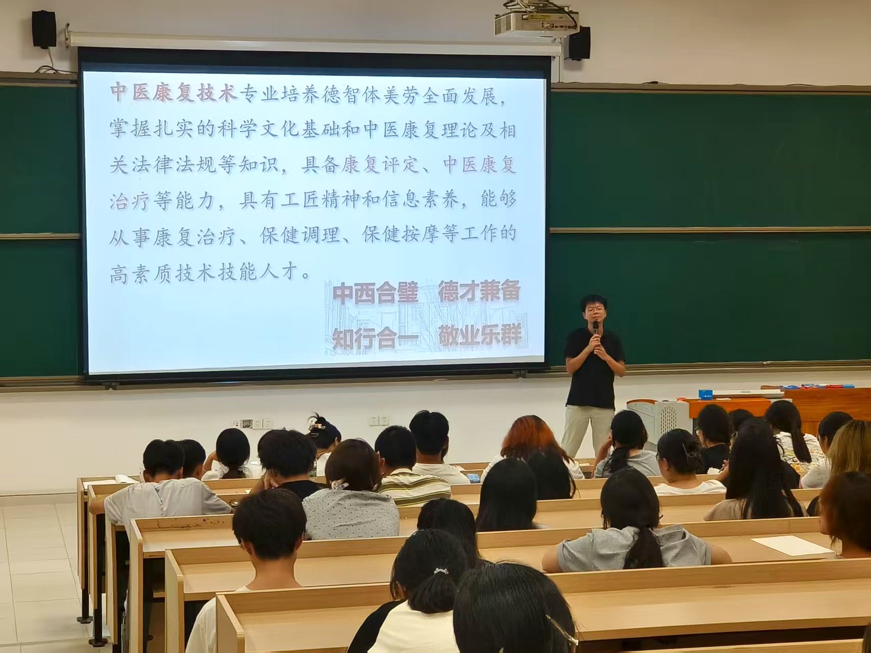 在2025级新生专业认知教育讲座上,他以“千年岐黄的当代回响”为题,从经络理论到技法实操,再到与现代康复的融合,深入浅出,点燃了新生对中医康复的专业热情与国粹传承的责任感。