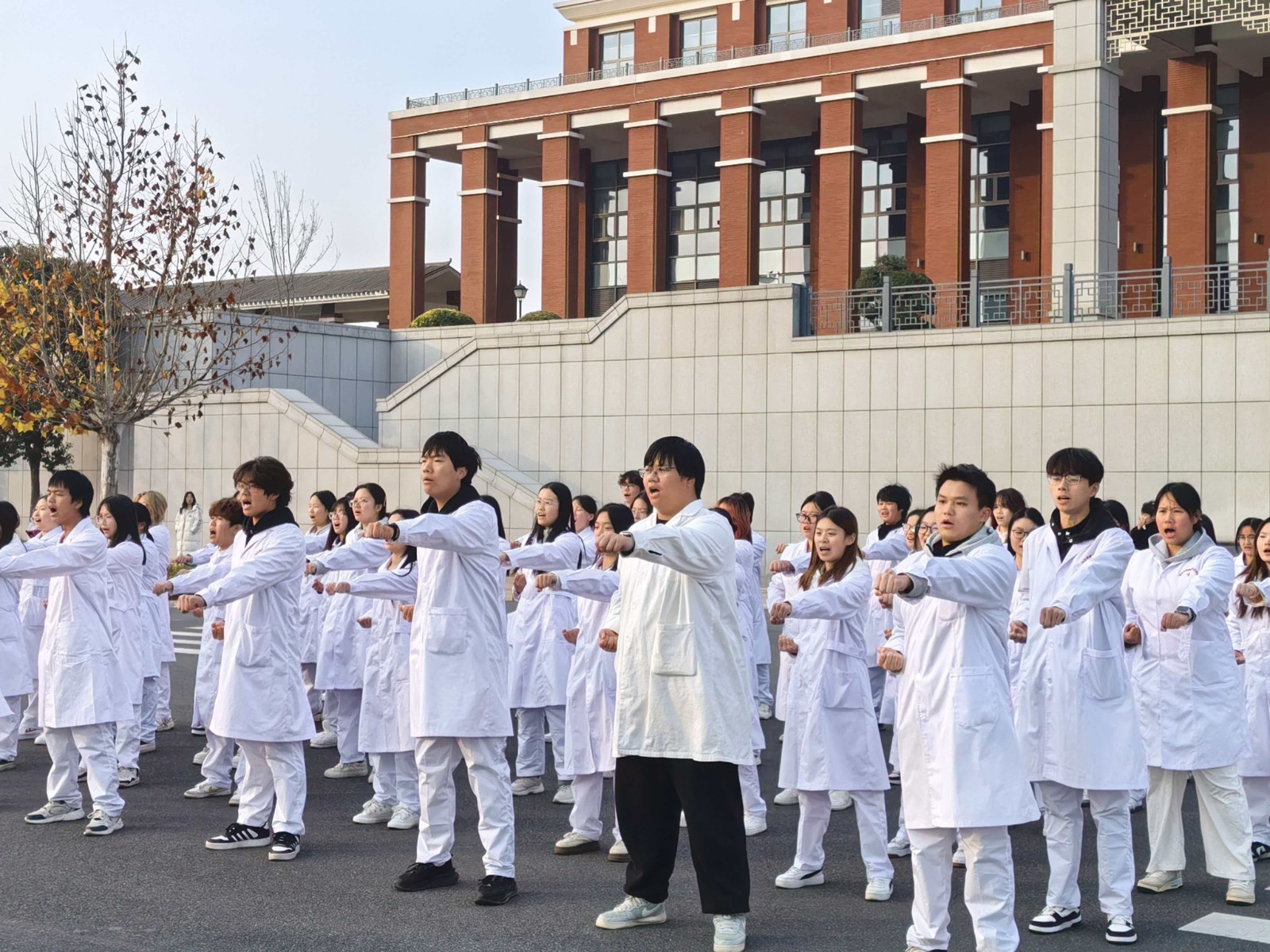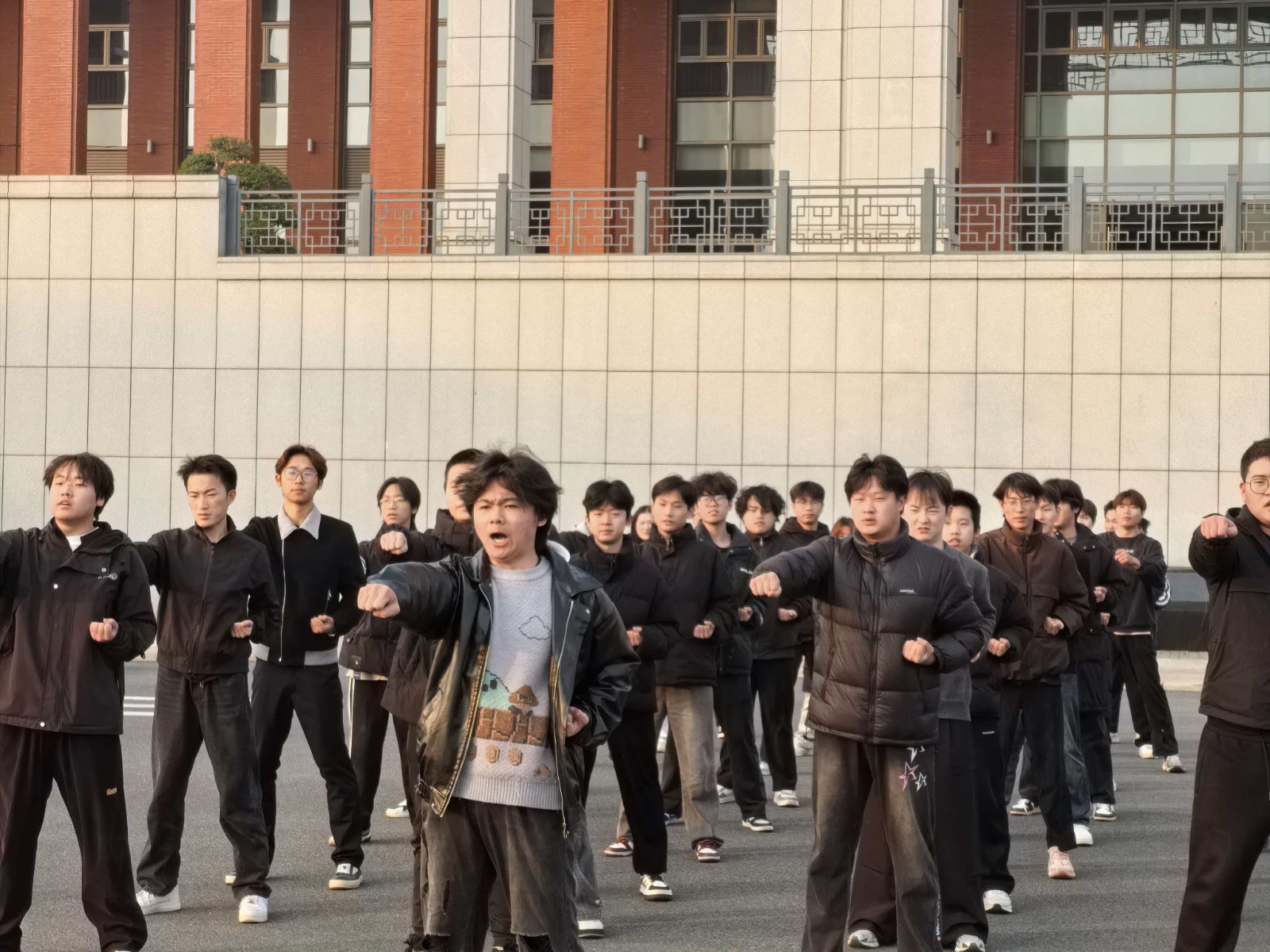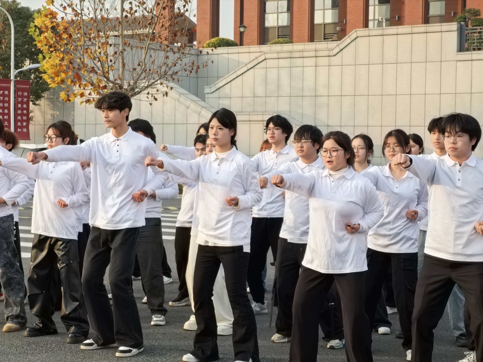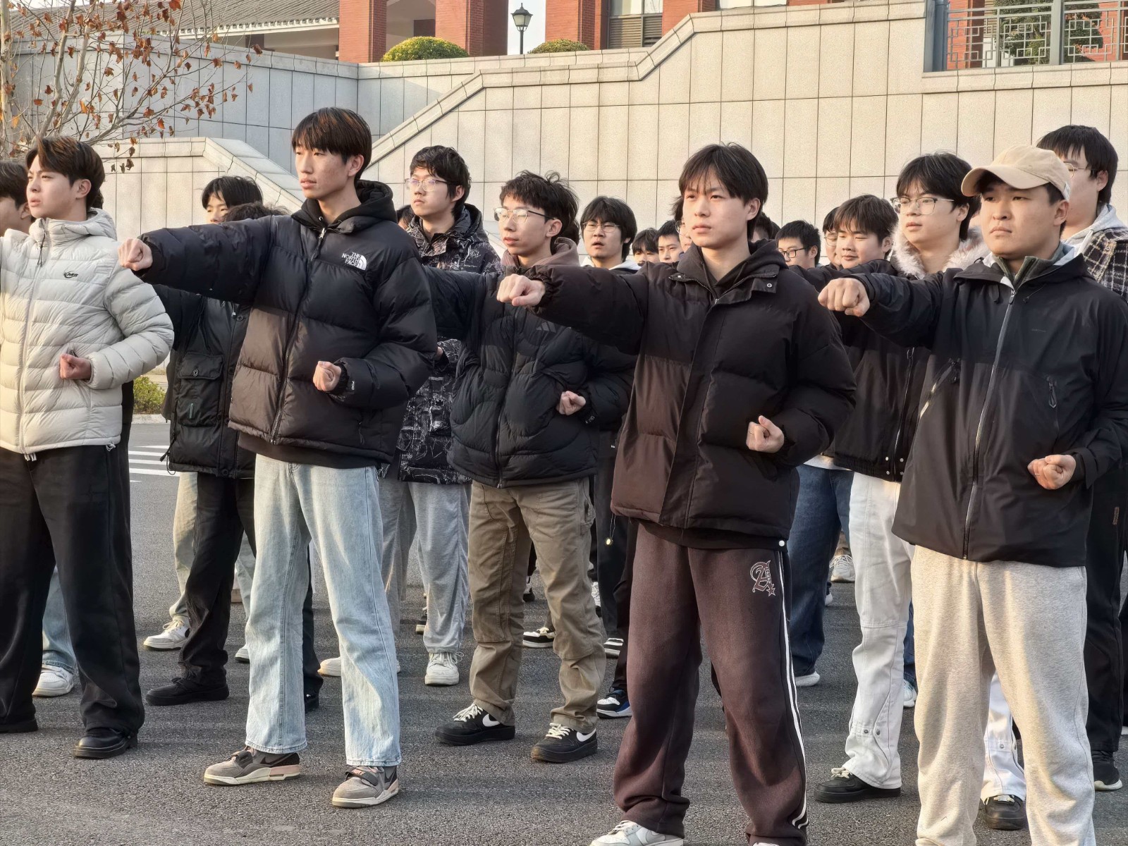 各班队列整齐、精神抖擞,随着指令整齐出拳!冲拳时刚劲有力、动作划一,发声时掷地有声、震彻全场,每一个招式都凝聚着团结的力量,每一声呐喊都彰显着少年的锐气,将拼搏精神与集体荣誉感展现得淋漓尽致。