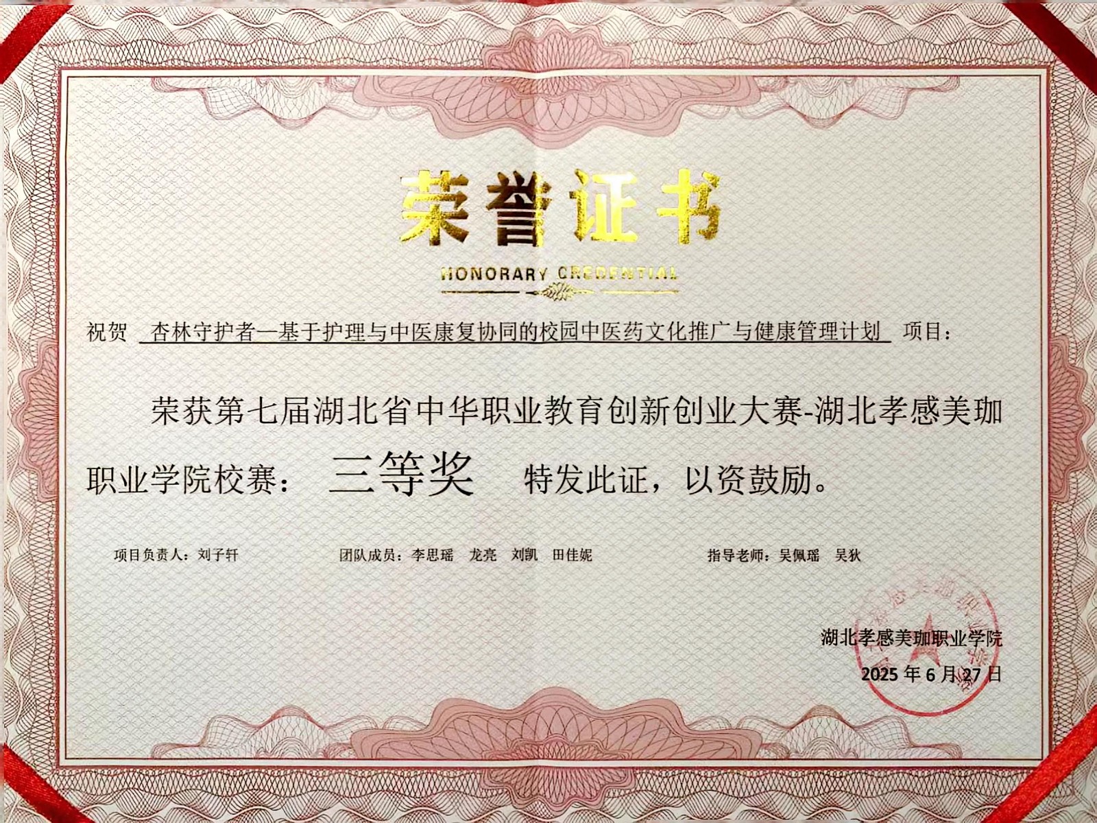 笃学精进,在知行合一中锤炼本领。“中西合璧、德才兼备、知行合一、敬业乐群”的育人理念,早已深深融入刘子轩的学习生涯。他刻苦学习中医康复技术专业,刻苦钻研理论知识,近一学年综合测评稳居班级第一,用优异成绩彰显“学霸”本色。暑期里,他主动走进随州市中医医院见习,将课堂所学转化为临床实践能力,在艾灸、推拿等实操技能中精益求精。